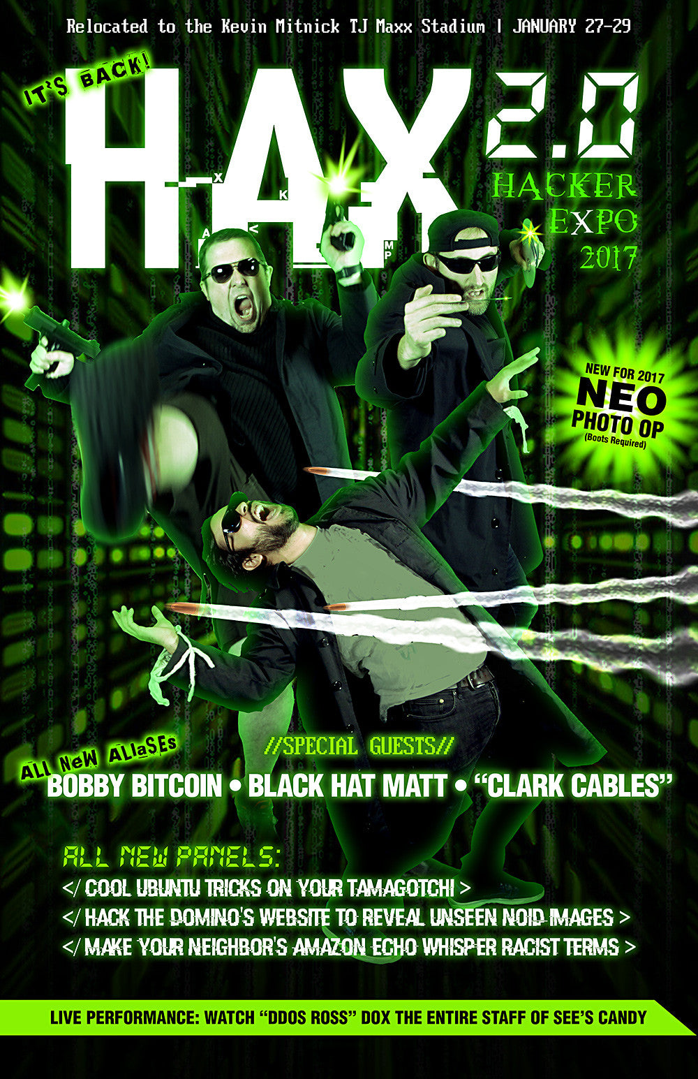 This poster, celebrating the return of America's favorite fake hacker event, was a convention exclusive and is available now in LIMITED numbers. We are selling the remaining stock while supplies last. Poster is 11x17"