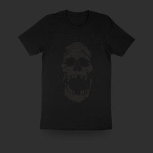 Our most terrifying shirt yet. Artwork printed EXTRA dark on a black NextLevel tee... it will not reveal its presence until you're very close... and then, it's too late. Qualifies your order for a secret mystery prize!