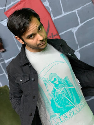 Death approaches and connects to the soul... via composite cables. This shocking light gray NextLevel tee is soft and ready for your cold embrace. Qualifies your order for a secret mystery prize!