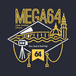 Sun. Surf. Sick vids. It’s just another say in sunny So Cal. San Diego, to be specific- the very place that Mega64 was born and exists in to this day! No shirt encapsulates the posi atmosphere better than our new Cali 64 shirt. This dark blue shirt, on an ULTRA SOFT NextLevel tee, comes with a SECRET MYSTERY PRIZE!!