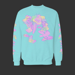 A sleepover into digital dreams. A Lagoon colored sweatshirt with artwork from another realm, including two high quality sleeve prints in a truly enchanting design.
