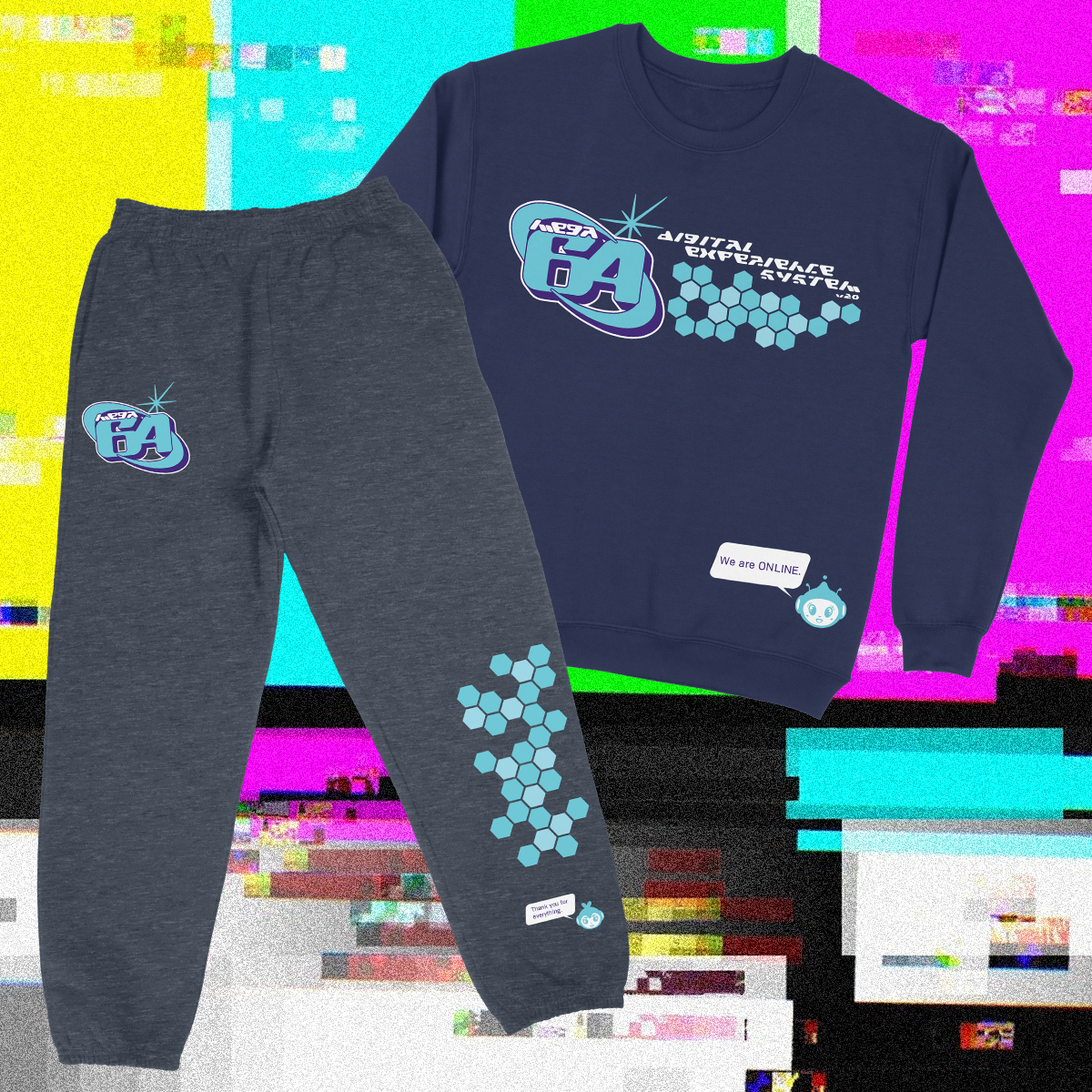 Celebrating the network that brings us together. This navy blue soft crewneck sweatshirt can be enjoyed separately or united in a digital union of endless comfort with the ONLINE Joggers. Qualifies your order for a secret mystery prize. Black Friday exclusive.