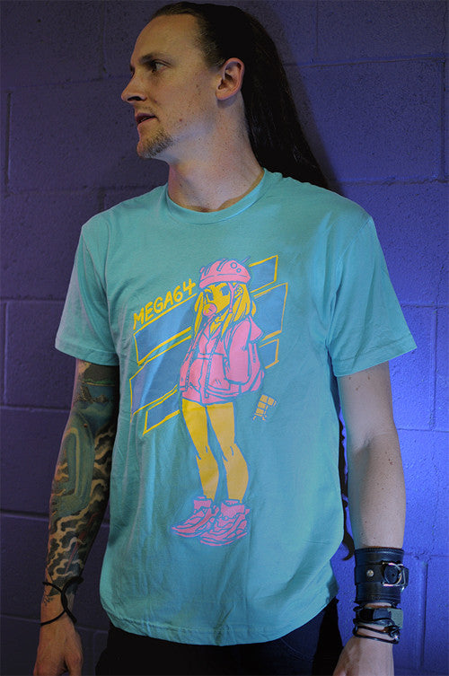 The first word you think of when someone mentions Mega64 is "cute." It's about time we had a shirt to reflect that. Featuring artwork by Mariel Cartwright, this super bright light-blue shirt is on a soft NextLevel tee and ready to be embraced. Comes with a SECRET MYSTERY PRIZE!!