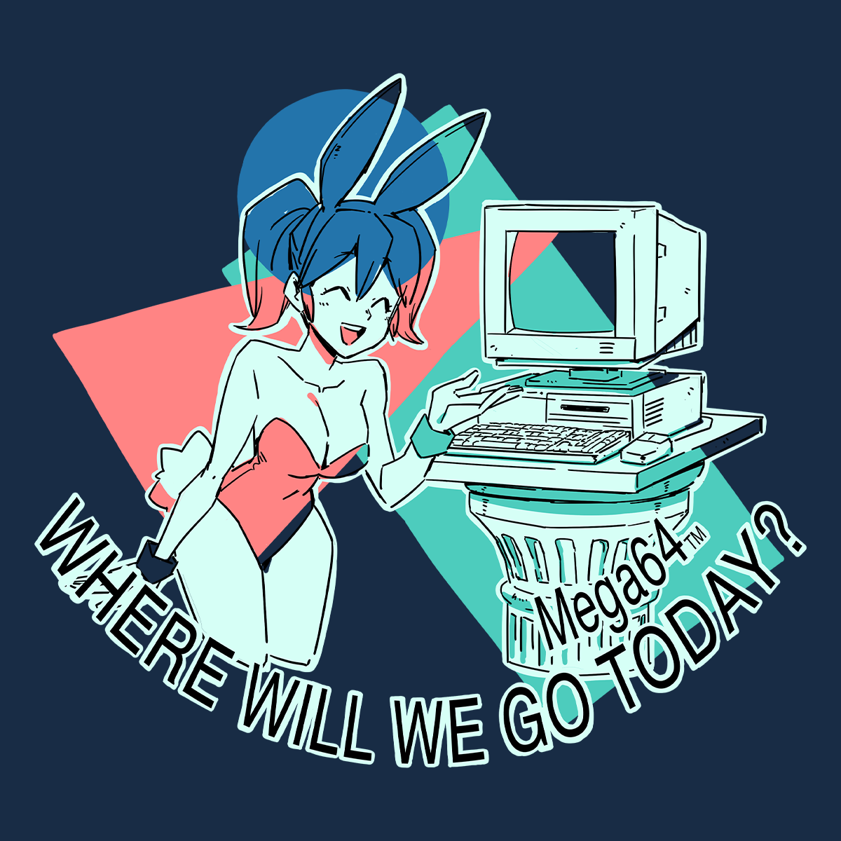 Let's go on a cyber trip! A formerly event-exclusive navy blue Comfort Colors shirt with artwork by Mariel Kinuko Cartwright, available online for Black Friday only.